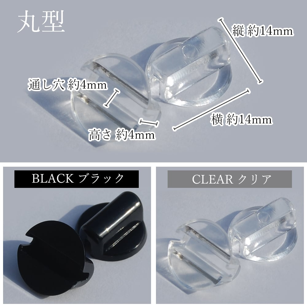 丸型:縦横 約14mm、通し穴 幅約4mm 高さ約4mm