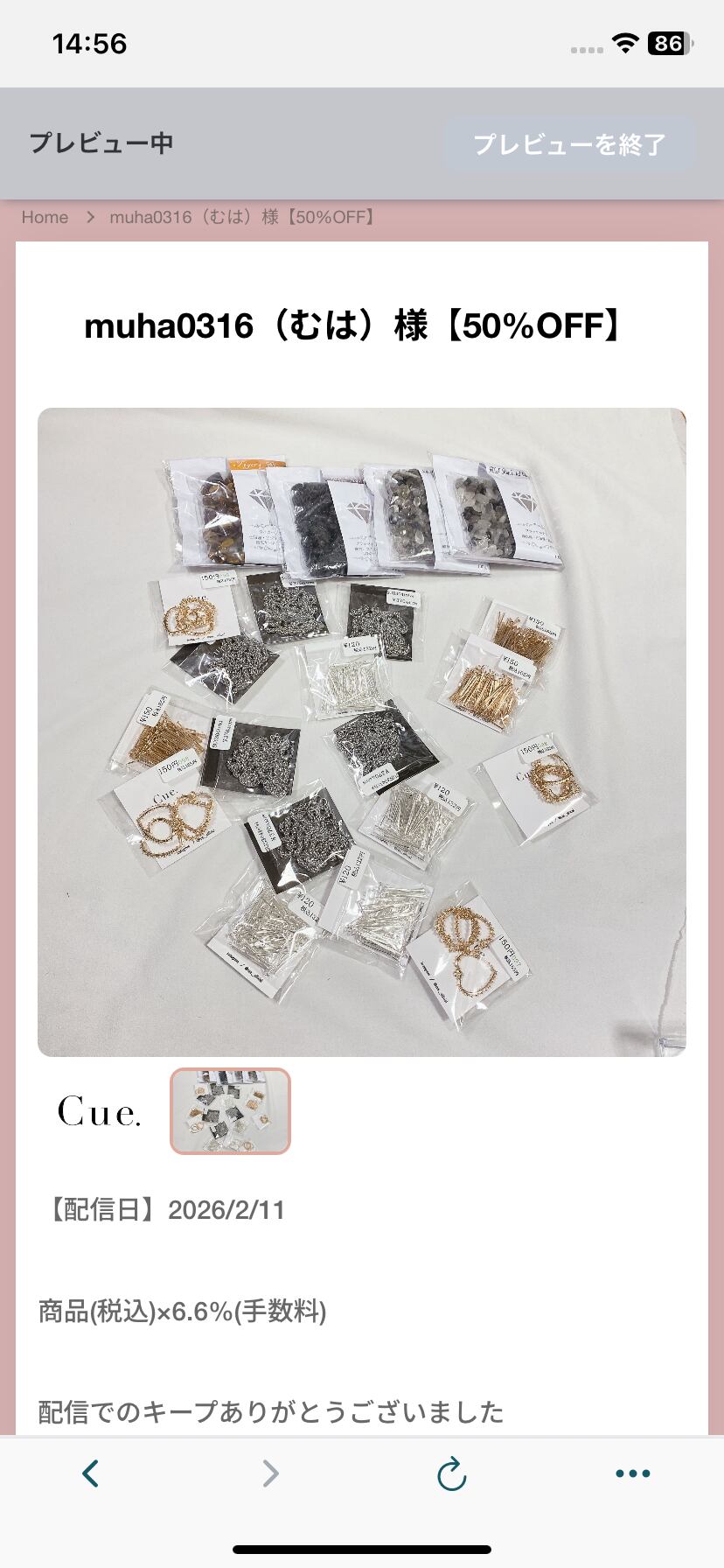 商品(税込)×6.6%(手数料)
