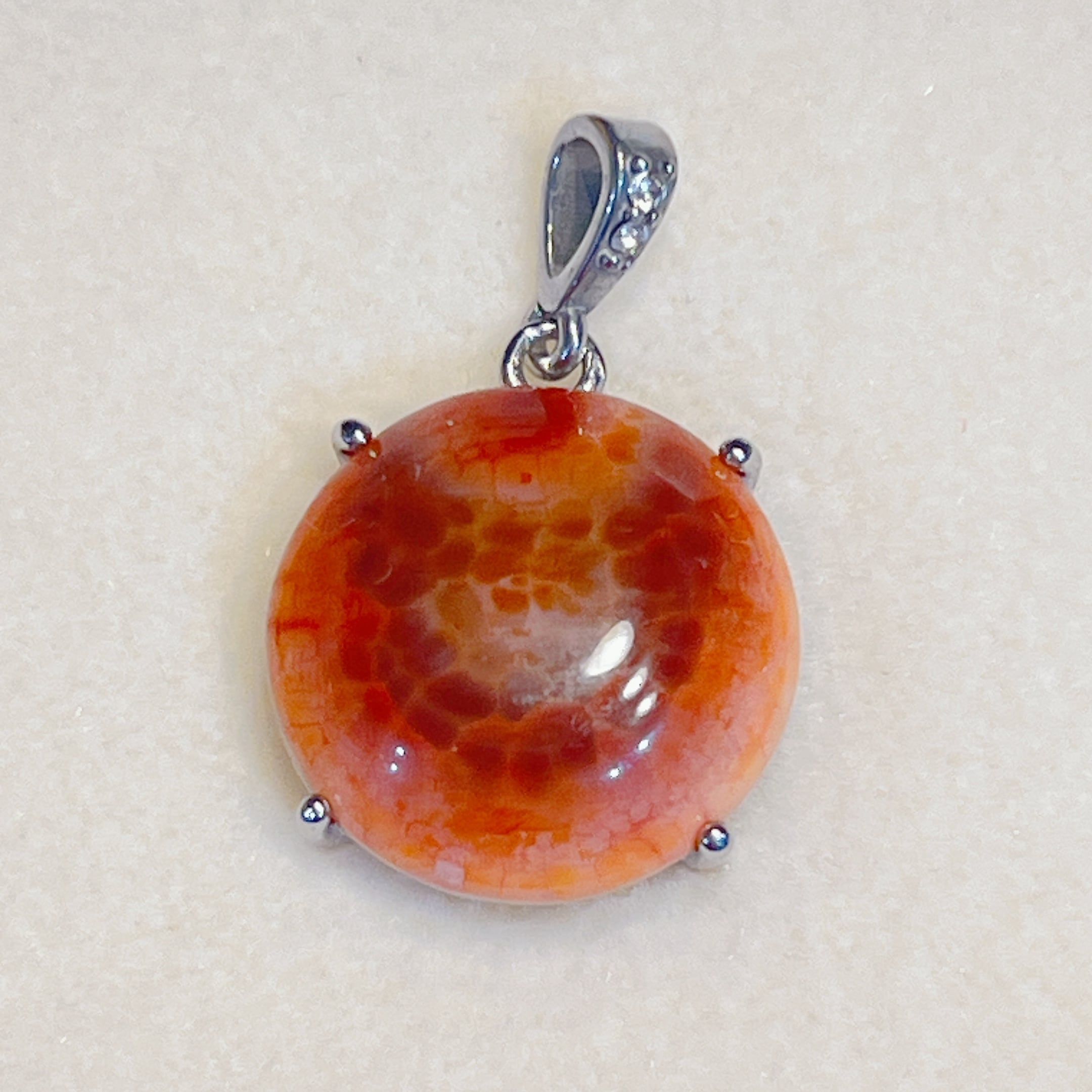 - 【PC502】ファイヤーアゲートTOP ST ラウンド 約18mm ブラジル産