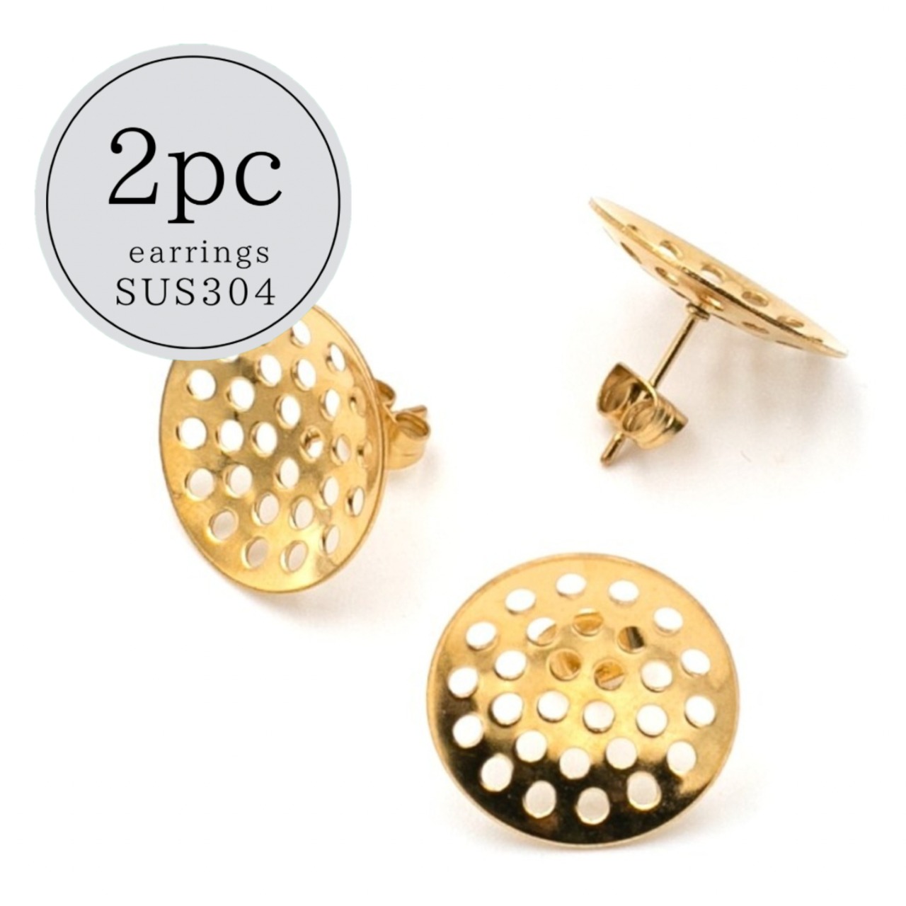 【A824】シャワーヘッドピアス(18mm) ゴールド 2個 SUS304